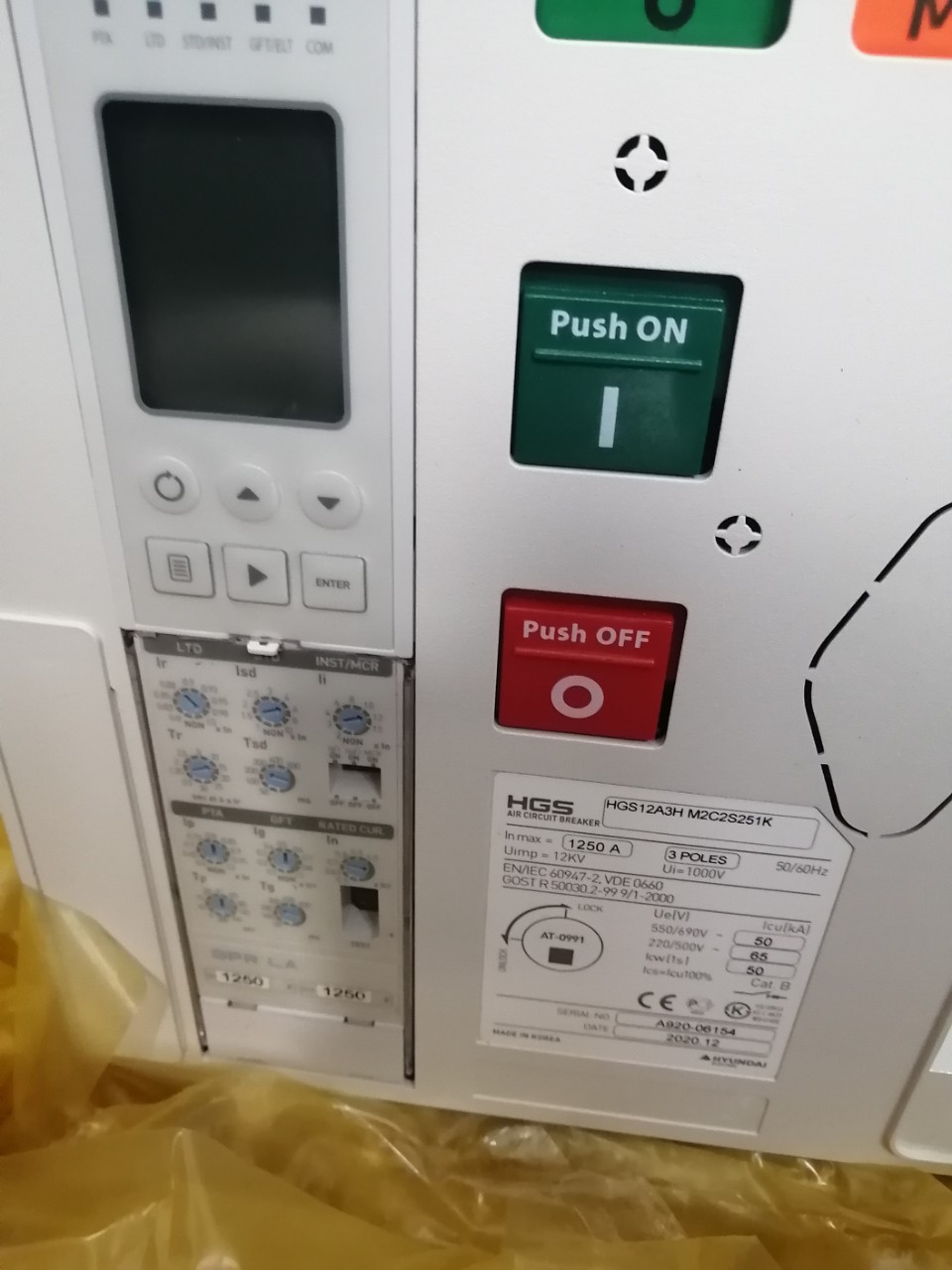 12 Tháng ( theo quy định của nhà SX )Máy cắt không khí (ACB) HGS12A3H 3P 1250A 65kA