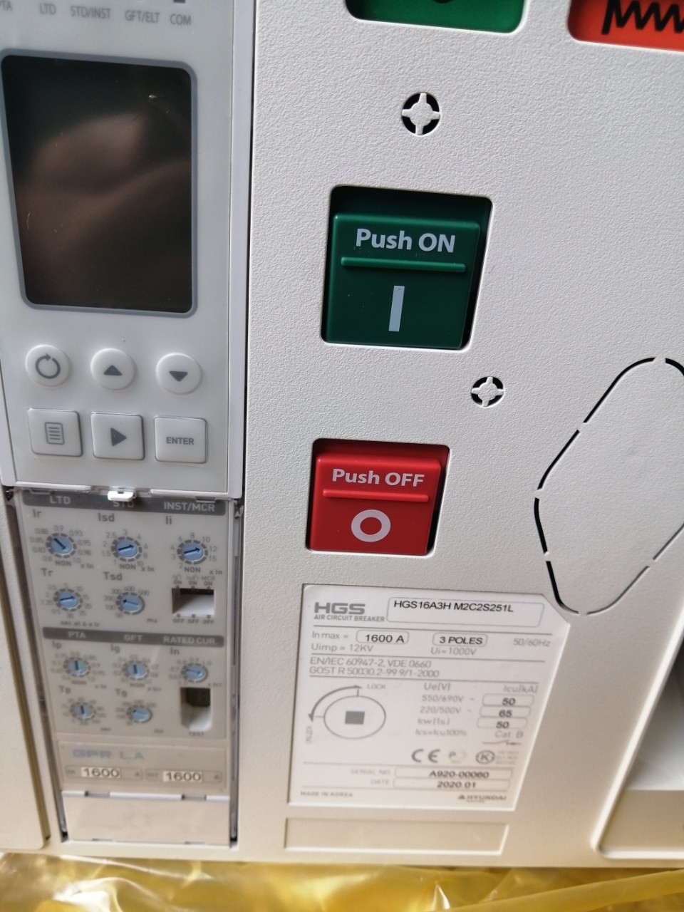 Máy cắt không khí (ACB) Model HGS/HGN đã có Rơ le GPR-LA (bảo vệ LSIG) tích hợp màn hình LCD và truyền thông MODBUS