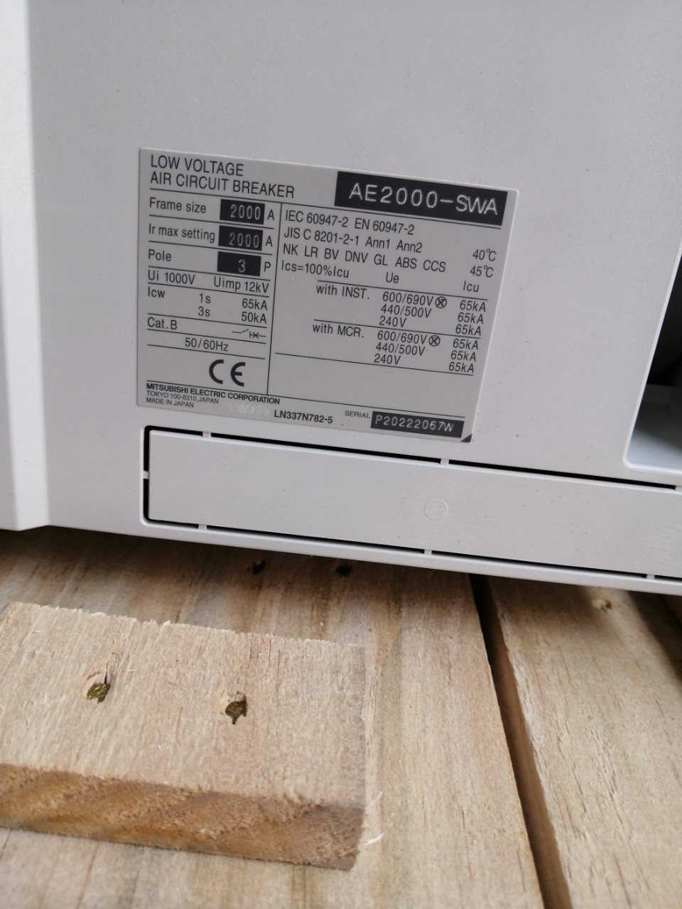 Thông số máy cắt ACB AE2000-SWA của Mitsubishi :