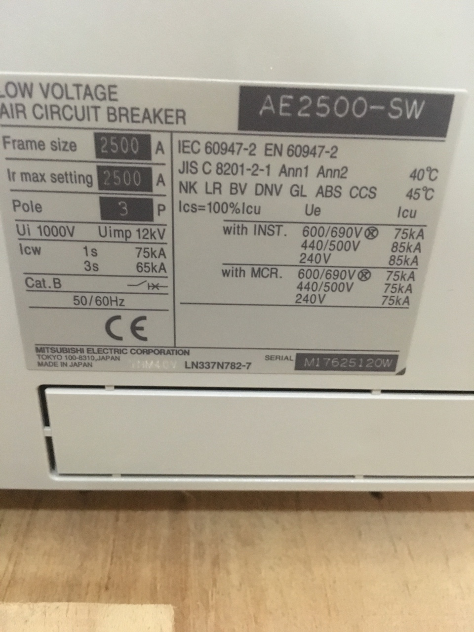 Thông số máy cắt ACB AE2500-SW của Mitsubishi :