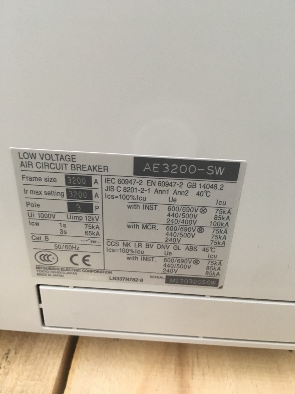 Thông số máy cắt ACB AE3200-SW của Mitsubishi :