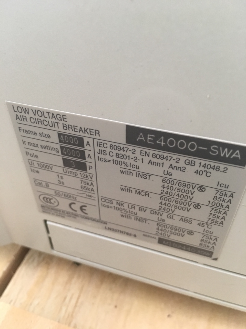 Thông số máy cắt ACB AE4000-SWA của Mitsubishi :