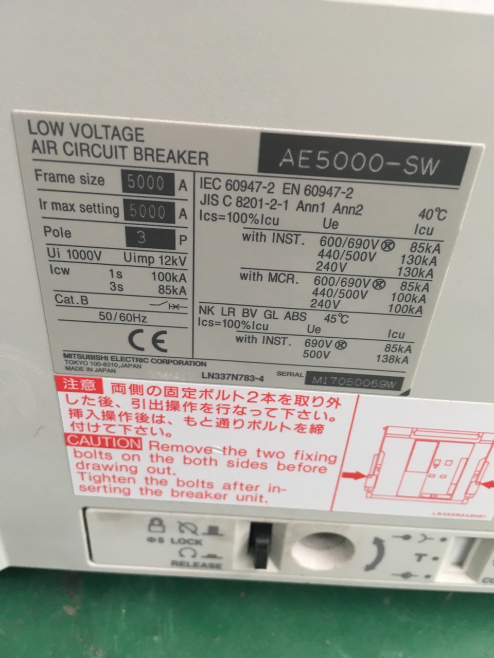 Thông số máy cắt ACB AE5000-SW của Mitsubishi :