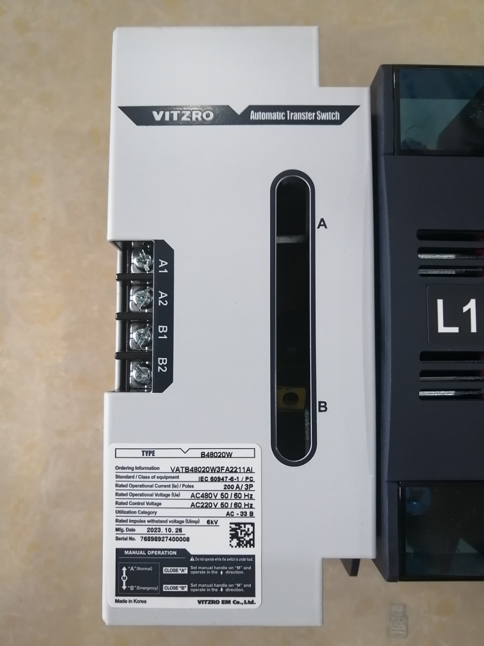 Thông số: Bộ chuyển nguồn tự động ATS Vitzro 62W ( FRONT ON-ON ) từ 100~200A