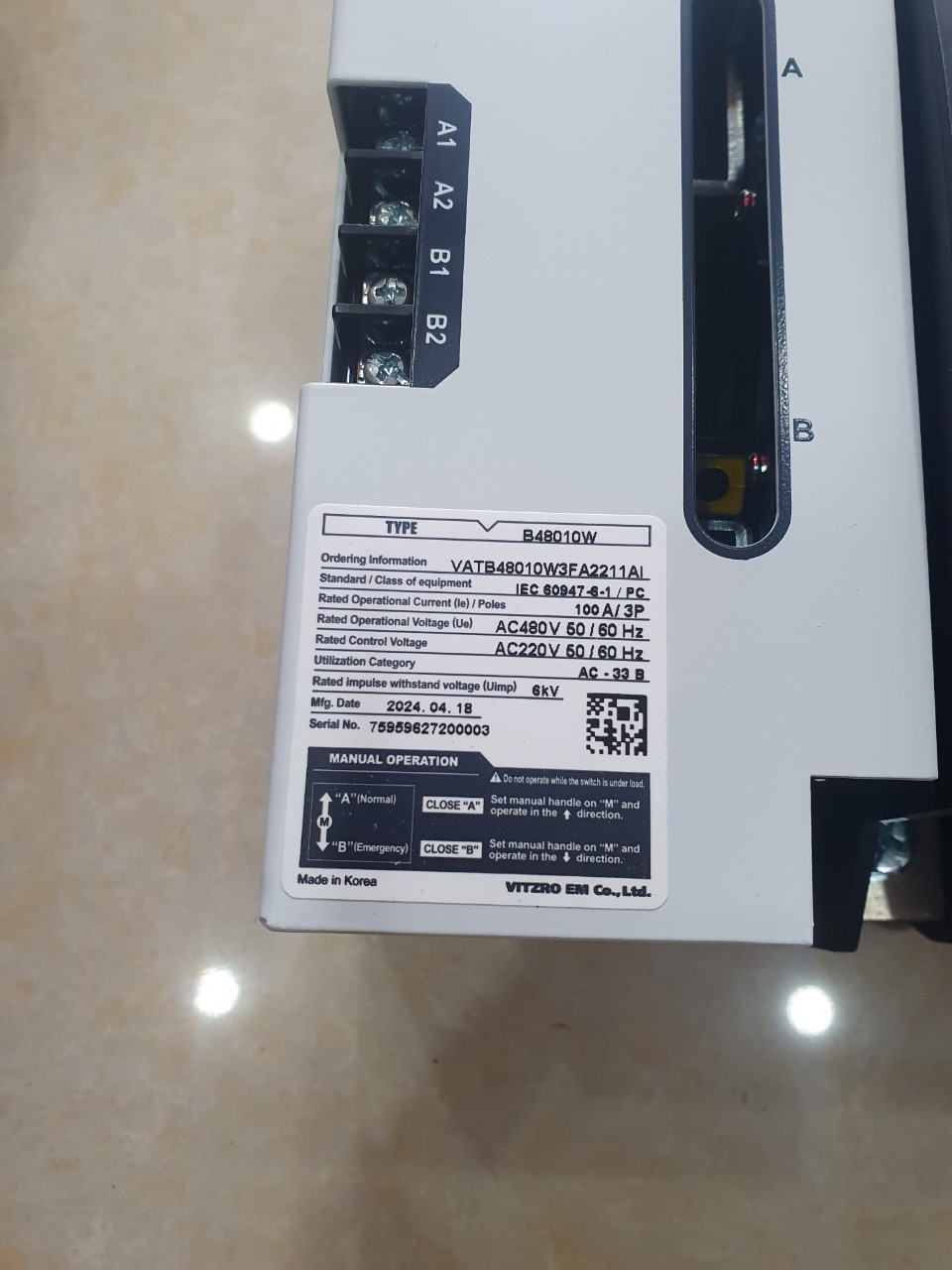 Thông số: Bộ chuyển nguồn tự động ATS Vitzro 61W ( FRONT ON-ON ) từ 100~200A