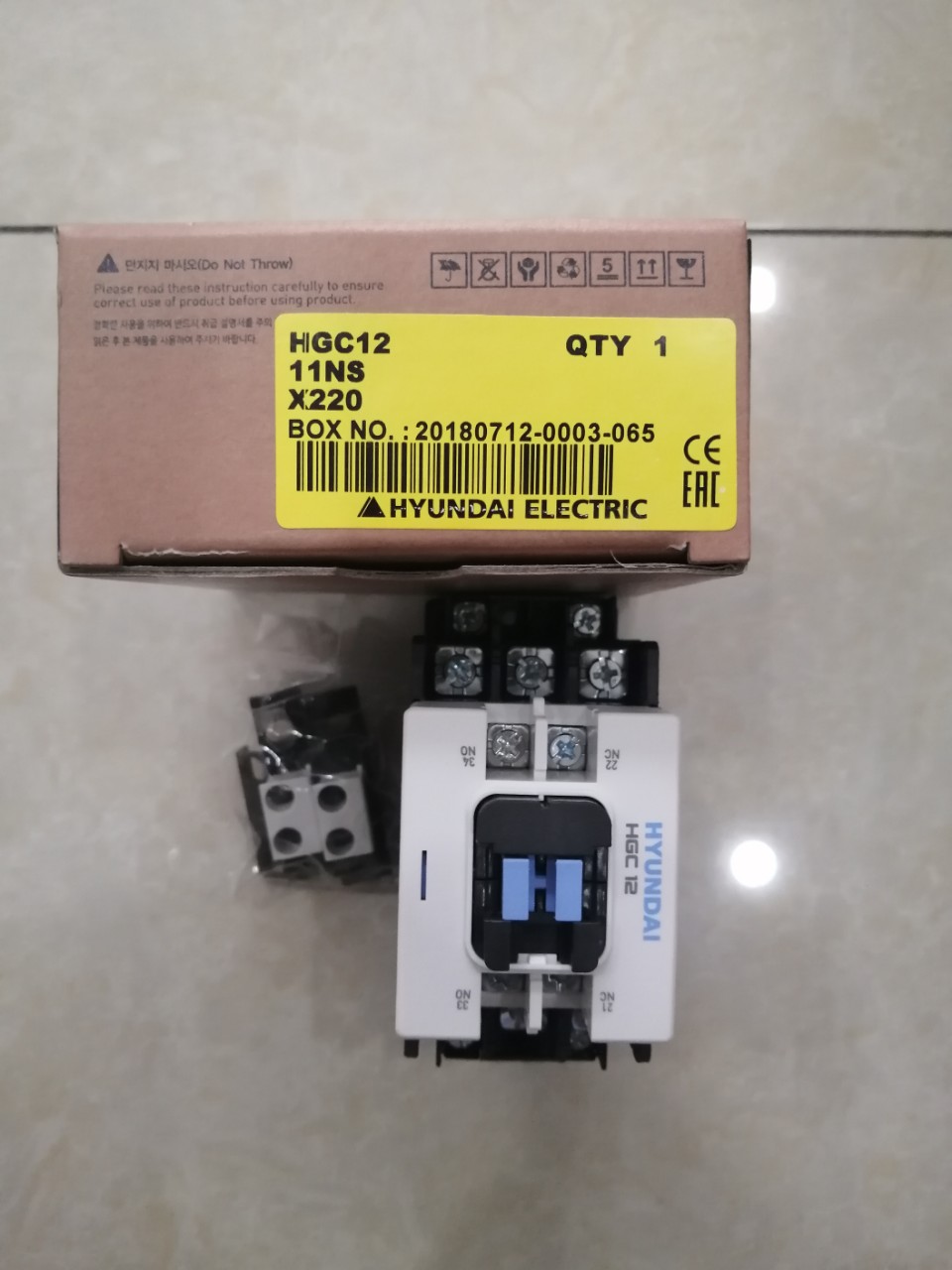 12 Tháng ( theo quy định của nhà SX )Contactor (Khởi động từ) HYUNDAI HGC12 3P 12A, công suất 5.5kW