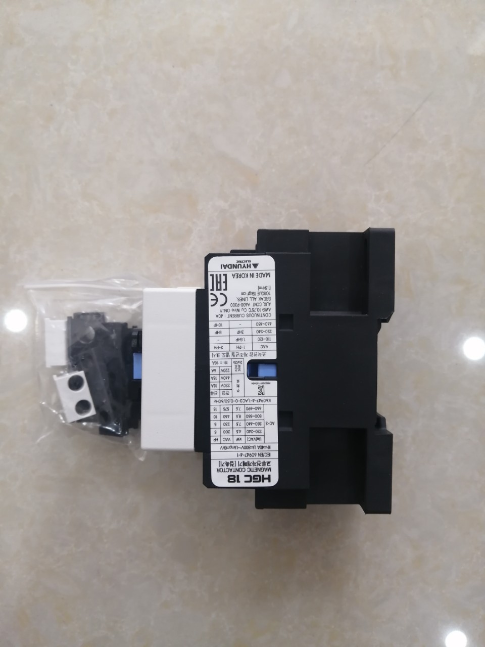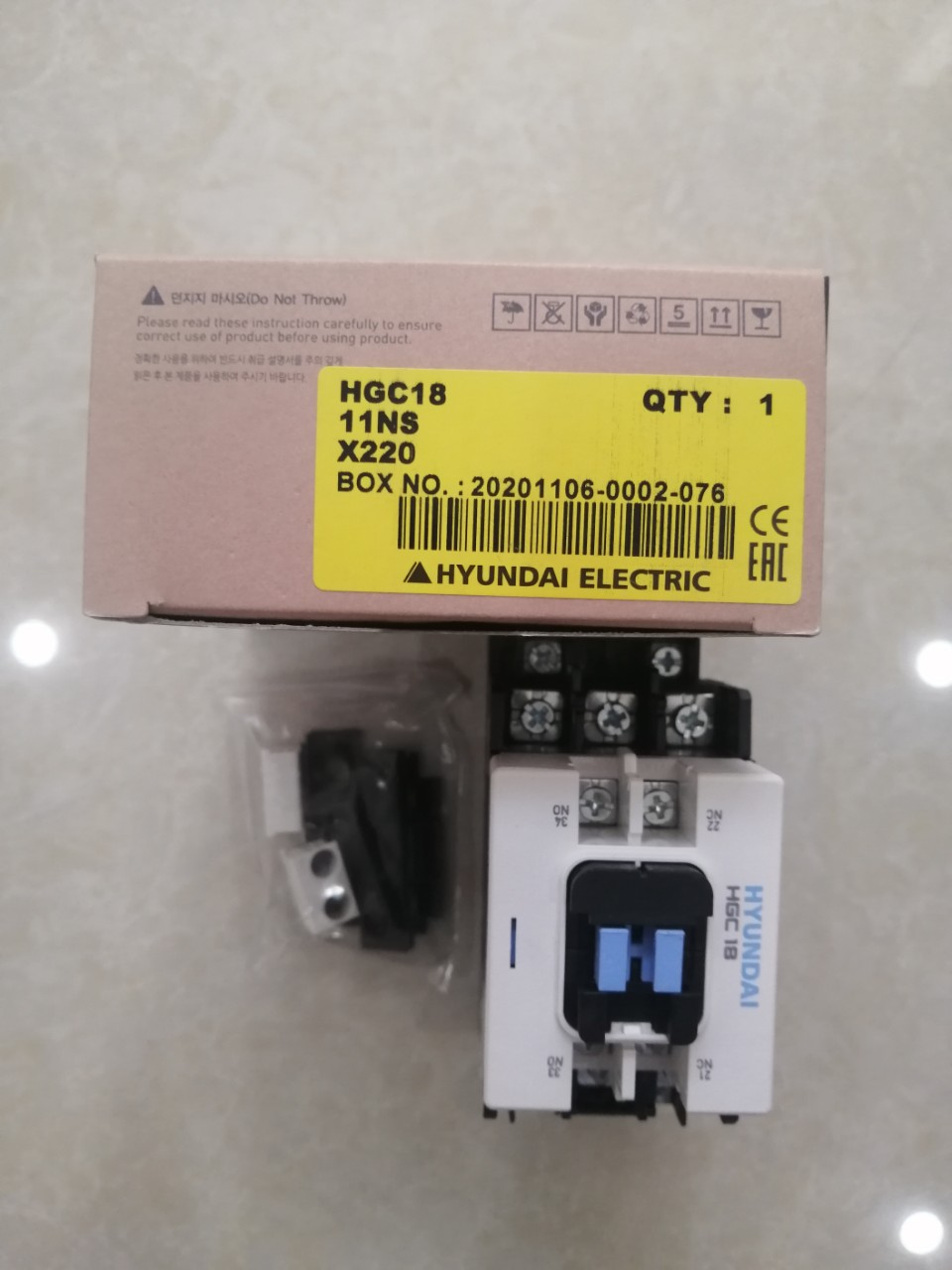 12 Tháng ( theo quy định của nhà SX )Contactor (Khởi động từ) HYUNDAI HGC18 3P 18A, công suất 7.5kW