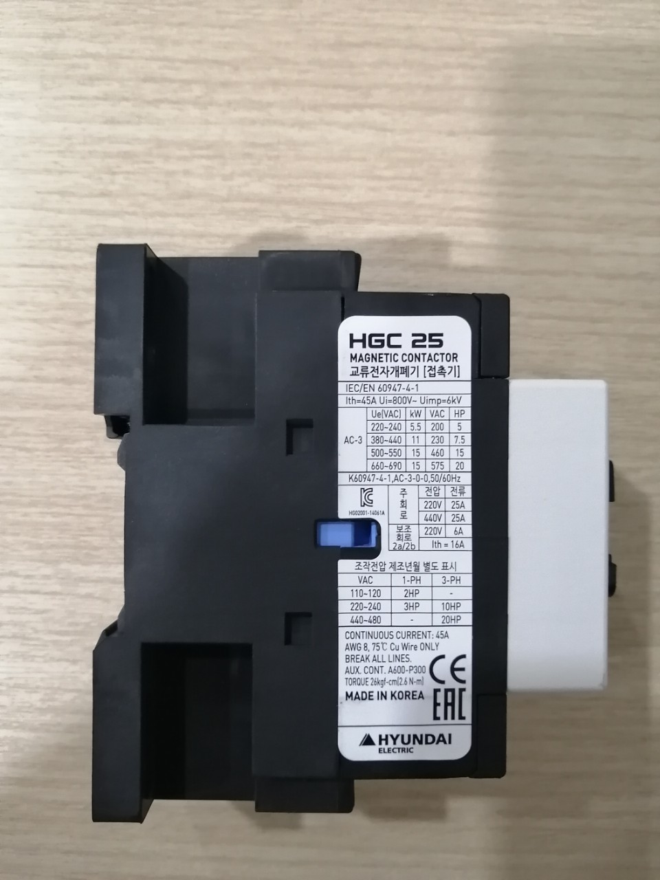 12 Tháng ( theo quy định của nhà SX )Contactor (Khởi động từ) HYUNDAI HGC25 3P 25A, công suất 11kW