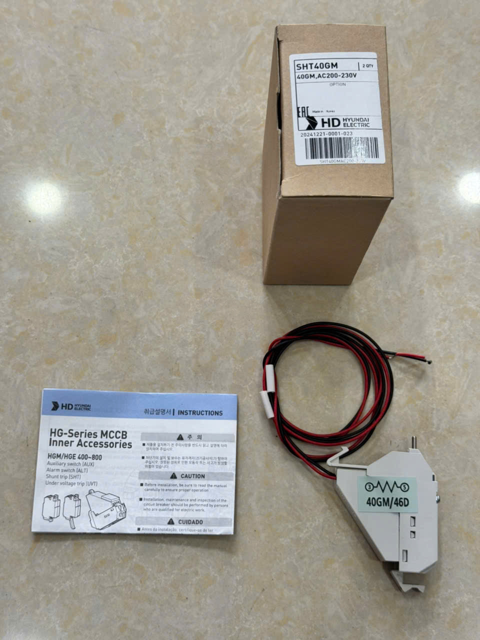 12 Tháng ( theo quy định của nhà SX )Cuộn ngắt SHT cho MCCB HYUNDAI ( Shunt trip coil device ) ngưỡng frame dùng cho HGM400/630/800