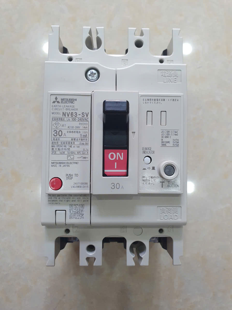 12 ThángELCB MITSUBISHI NV63-SV 2P 30A 15kA 30mA