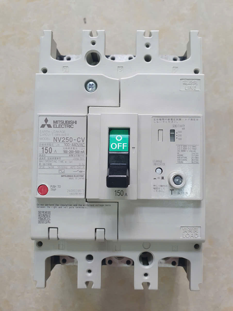 12 ThángELCB MITSUBISHI NV250-CV 3P 150A 25kA 30mA hoặc 1.2.500mA