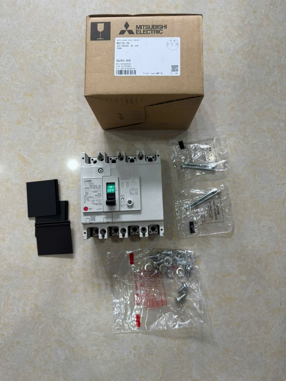 12 Tháng ( theo quy định của nhà SX )ELCB MITSUBISHI NV125-SV 4P 30A 30kA 30mA hoặc 1.2.500mA