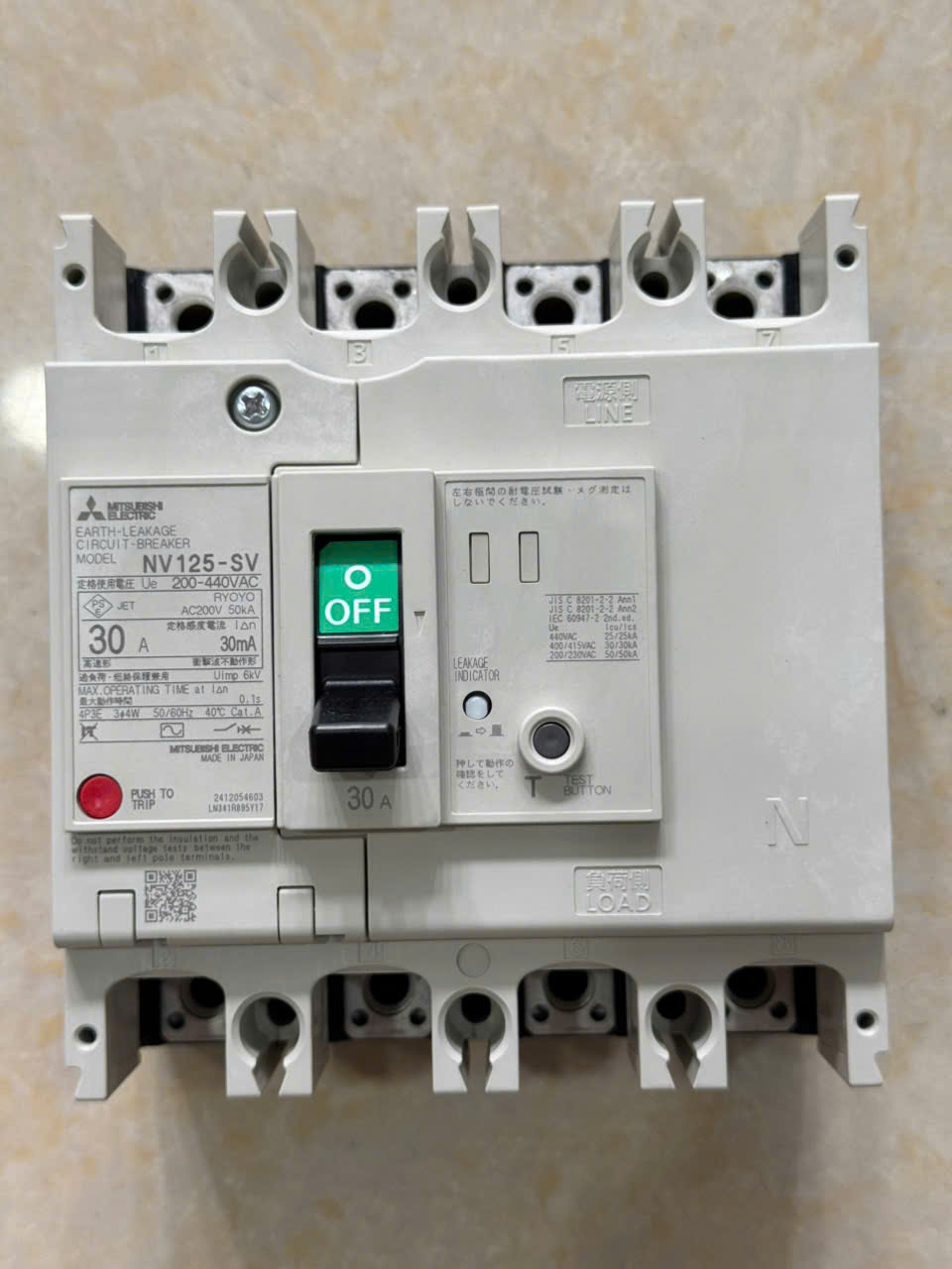 12 ThángELCB MITSUBISHI NV125-SV 4P 30A 30kA 30mA hoặc 1.2.500mA
