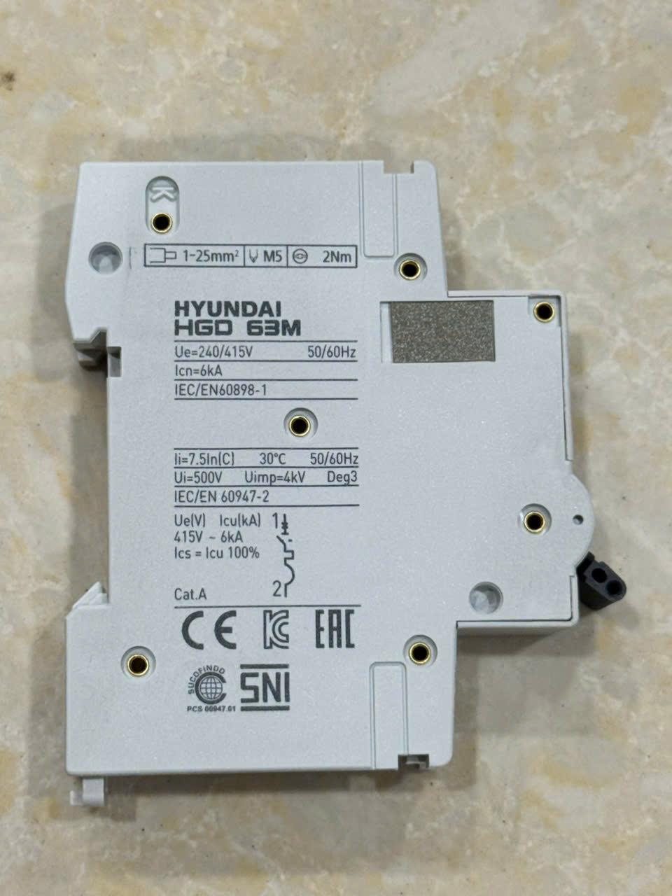 12 Tháng ( theo quy định của nhà SX )Aptomat tép (MCB) Hyundai HGD63M 1P 25A 6kA