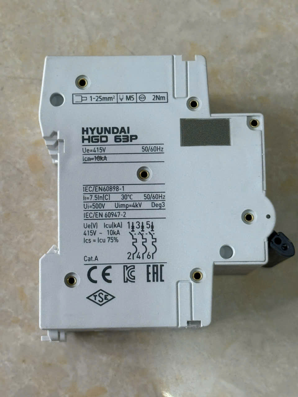 12 Tháng ( theo quy định của nhà SX )Aptomat tép (MCB) Hyundai HGD63P 3P 20A 10kA
