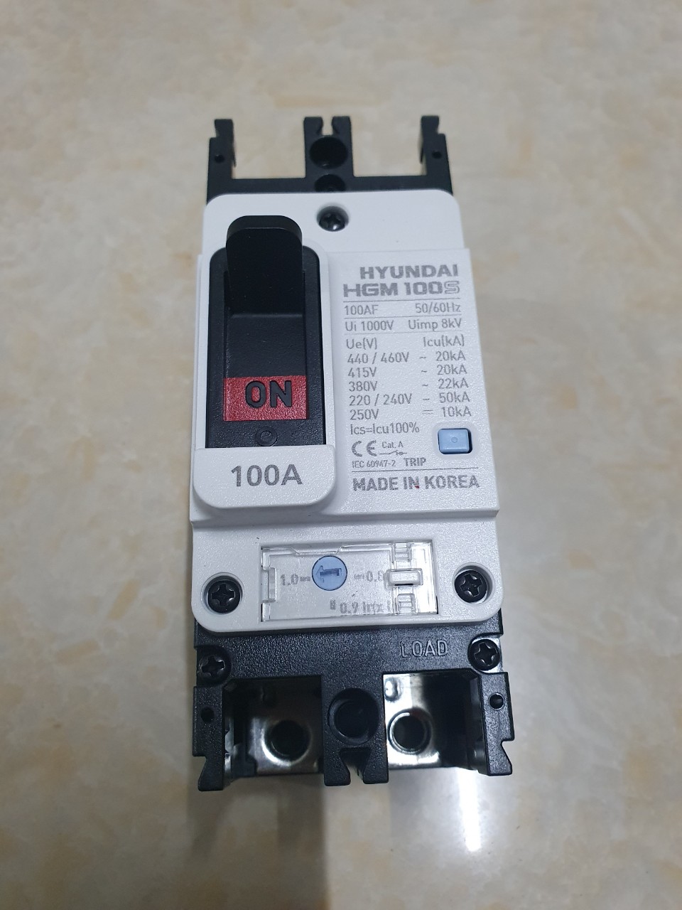12 Tháng ( theo quy định của nhà SX )MCCB HYUNDAI HGM100S-F 2P 100A 50kA