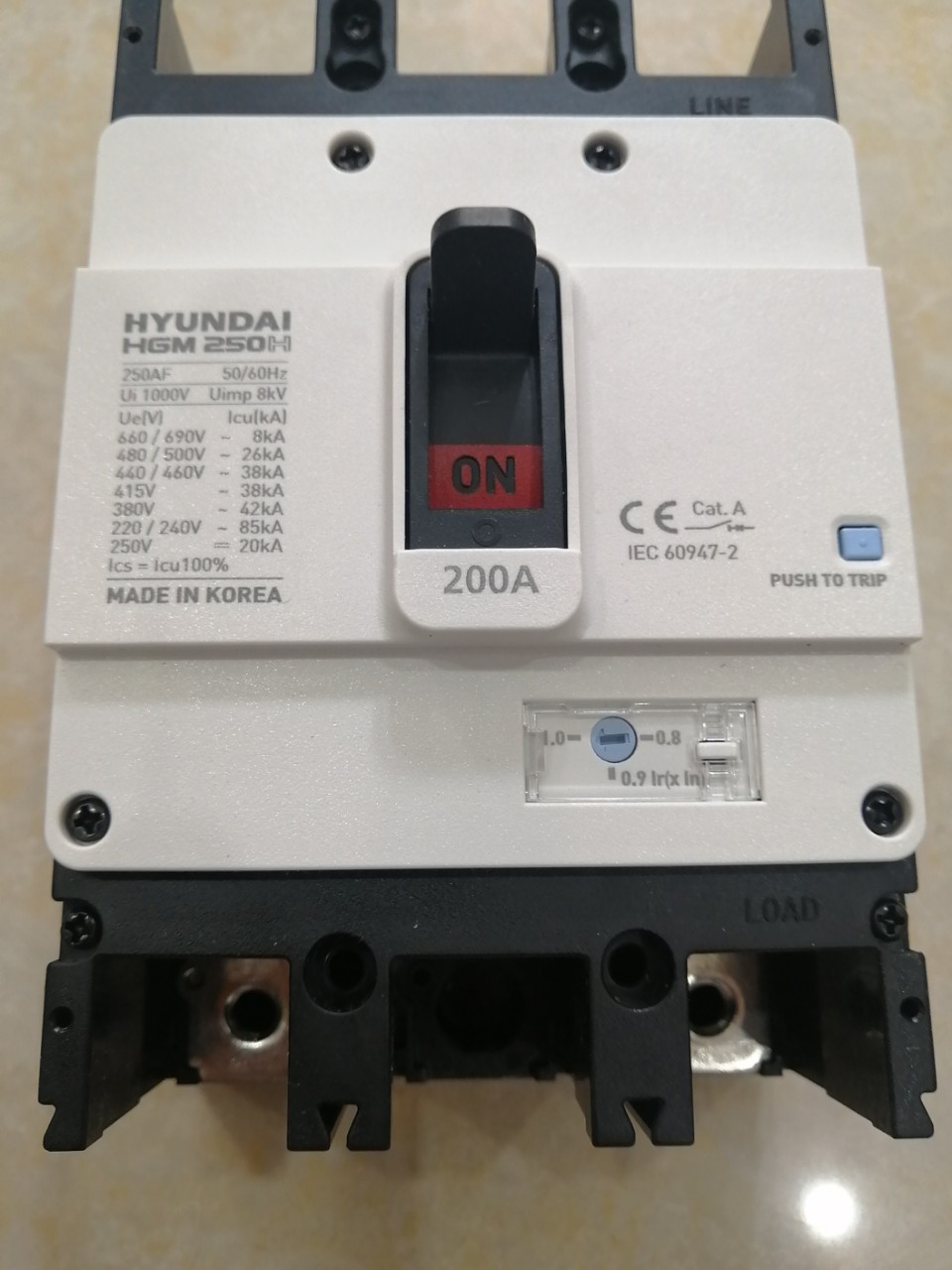 12 Tháng ( theo quy định của nhà SX )MCCB HYUNDAI HGM250H-F 2P 200A 85kA