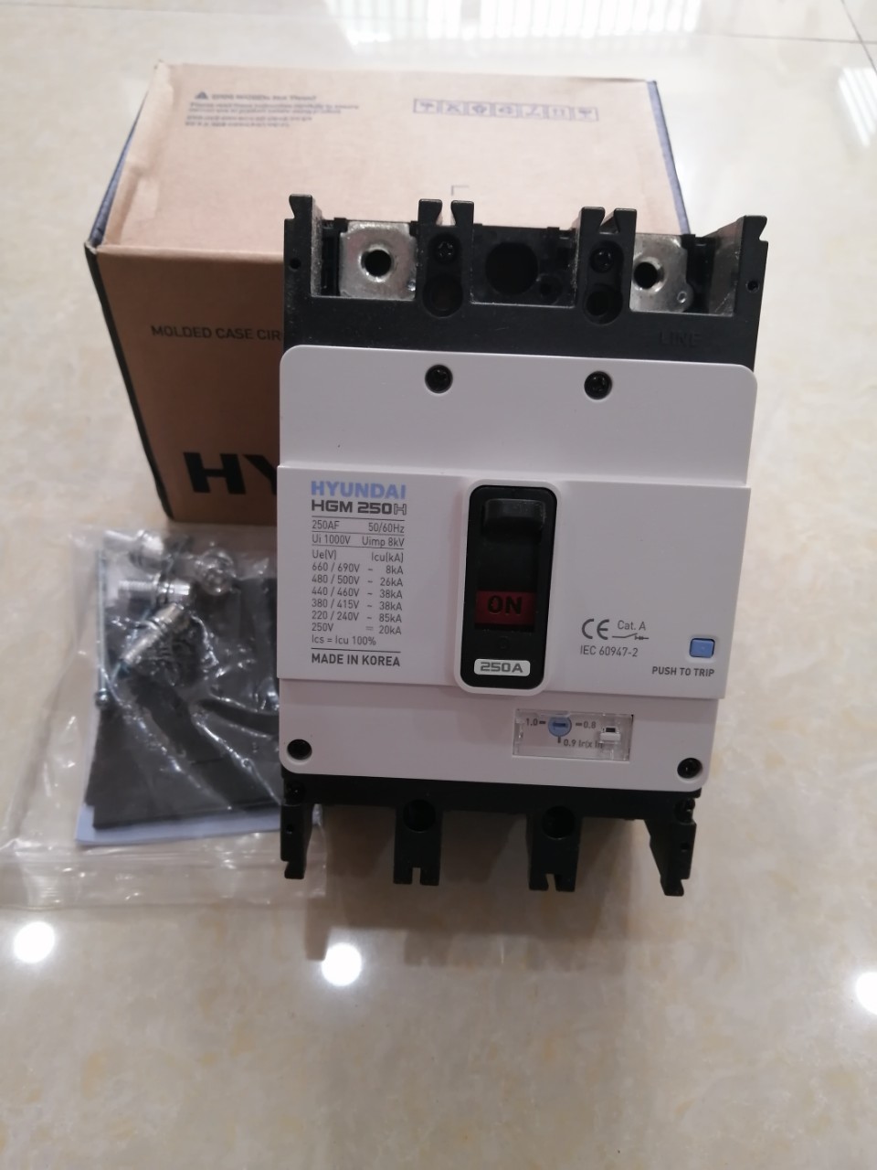 12 Tháng ( theo quy định của nhà SX )MCCB HYUNDAI HGM250H-F 2P 250A 85kA