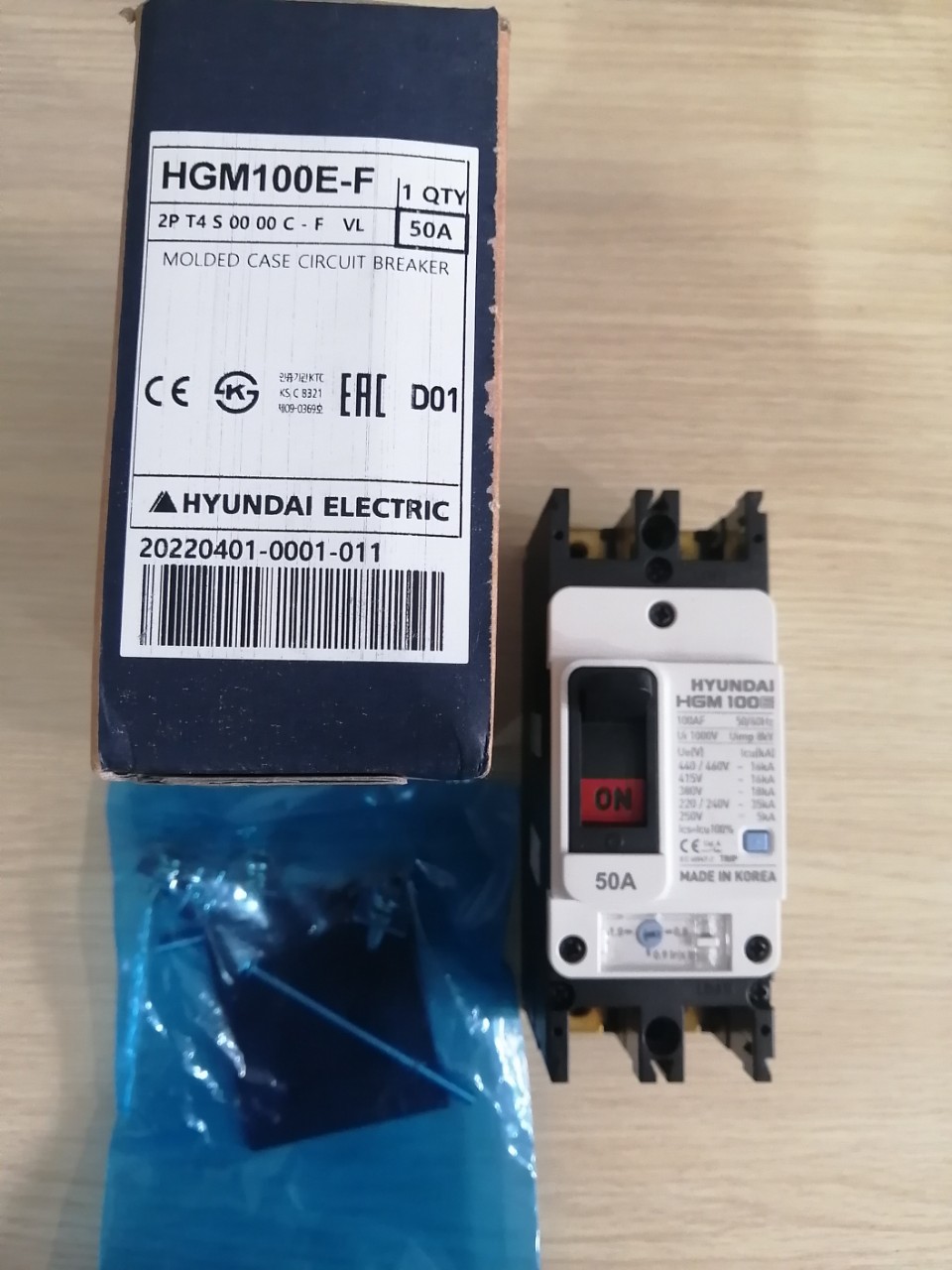 12 Tháng ( theo quy định của nhà SX )MCCB HYUNDAI HGM100E-F 2P 50A 35kA