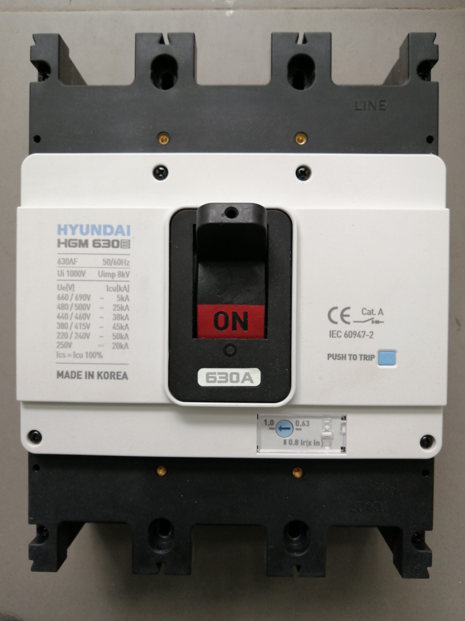 12 ThángMCCB HYUNDAI HGM630E-F 3P 630A 45kA