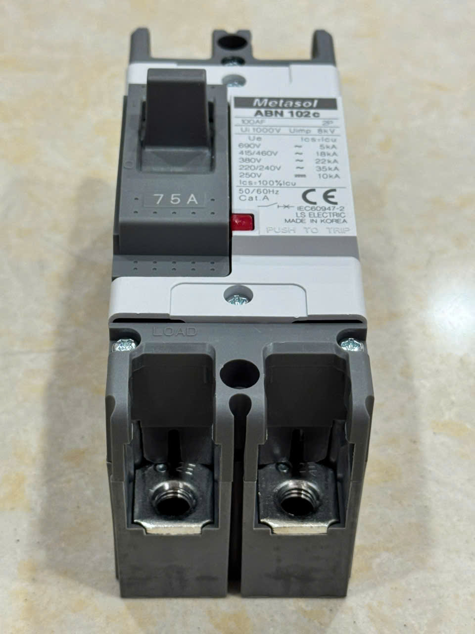 12 Tháng ( theo quy định của nhà SX )Aptomat khối (MCCB) LS ABN102c 2P 75A 35kA, dòng METASOL