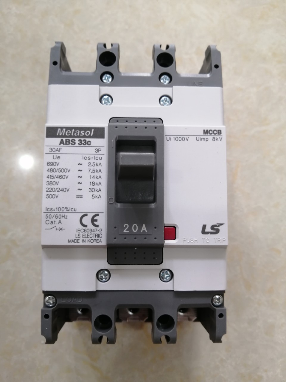 12 Tháng ( theo quy định của nhà SX )Aptomat khối (MCCB) LS ABS33c 3P 20A 14kA, dòng METASOL