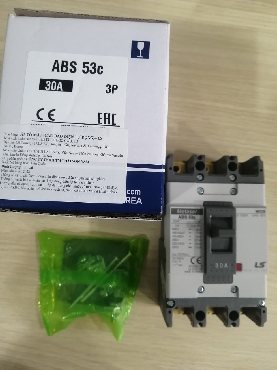 12 Tháng ( theo quy định của nhà SX )Aptomat khối (MCCB) LS ABS53c 3P 30A 22kA, dòng METASOL