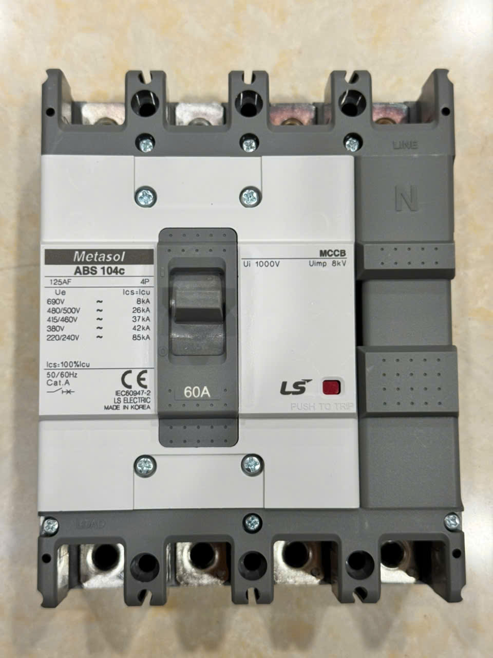 12 Tháng ( theo quy định của nhà SX )Aptomat khối (MCCB) LS ABS104c 4P 60A 42kA, dòng METASOL