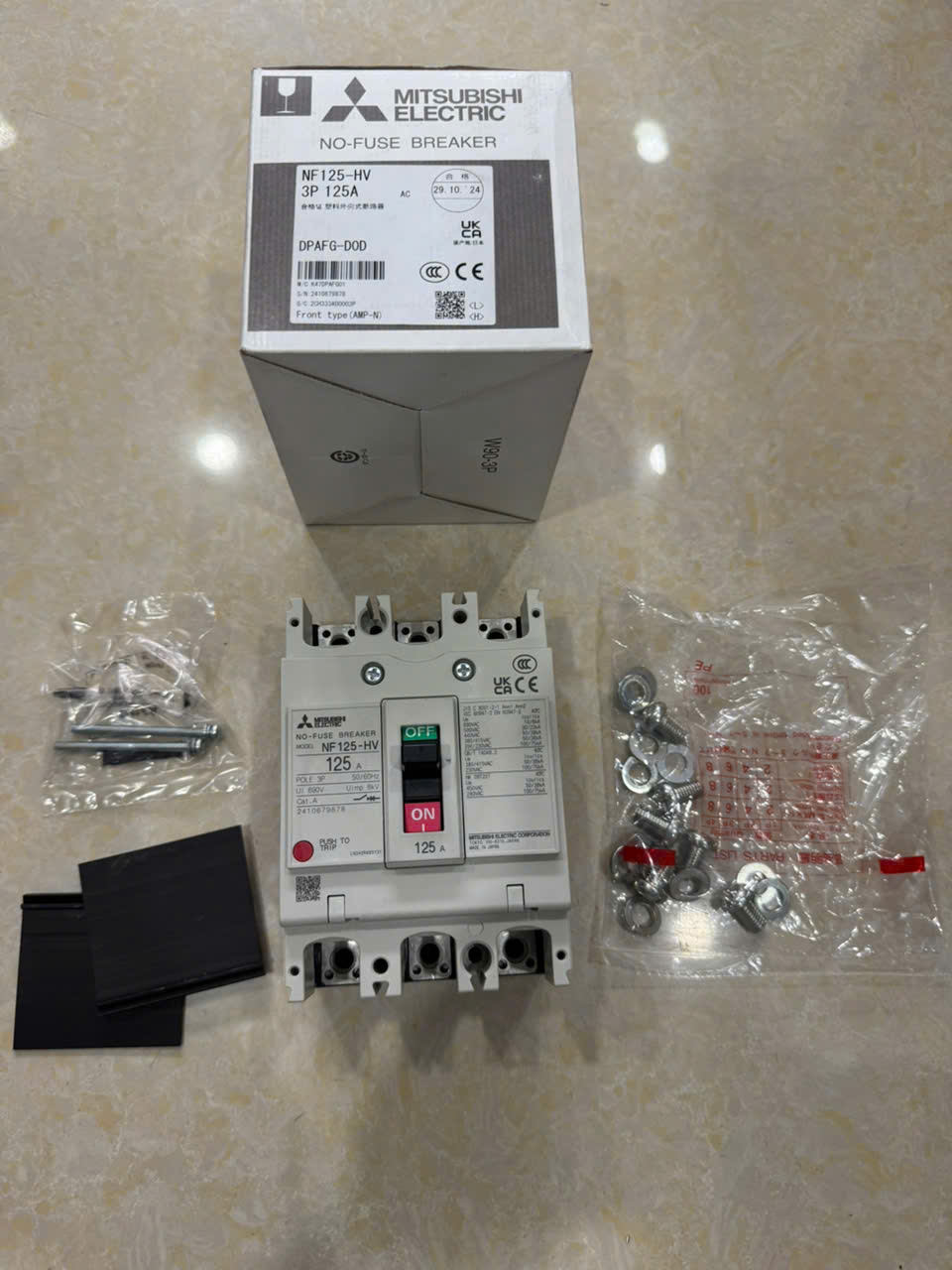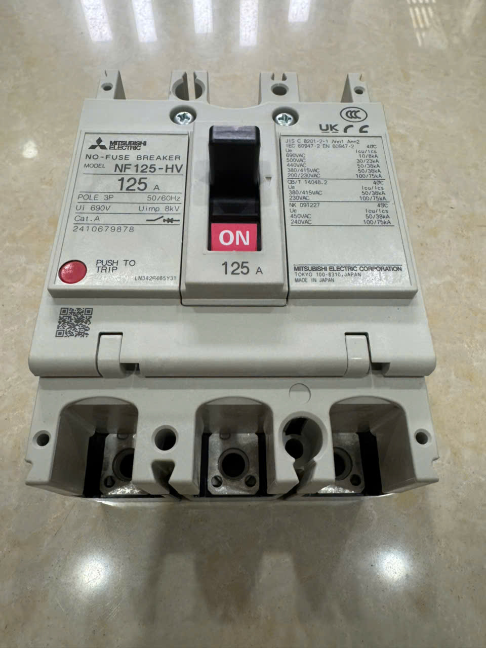 12 Tháng ( theo quy định của nhà SX )Aptomat khối (MCCB) Mitsubishi NF125-HV 3P 125A 50kA