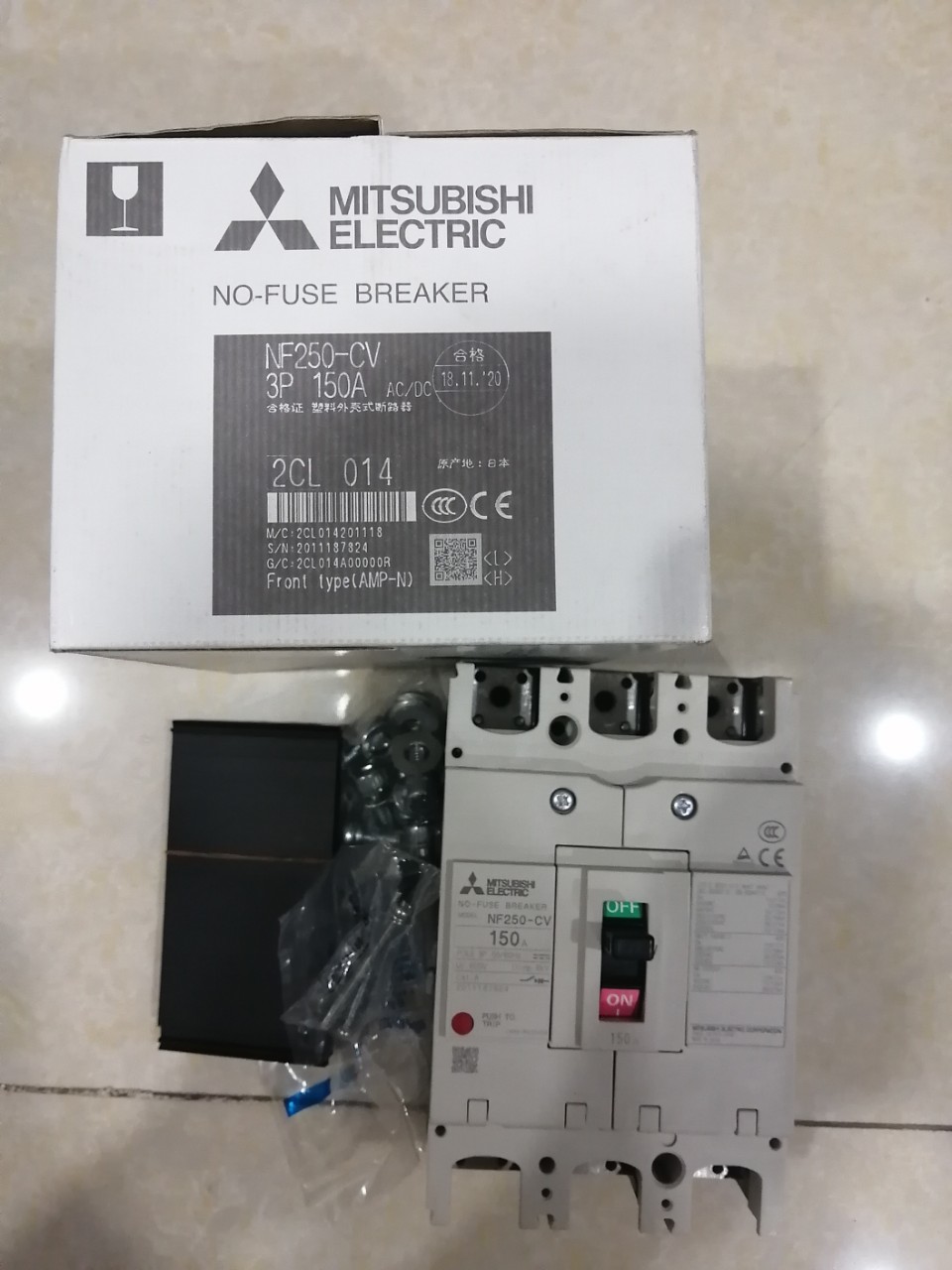 12 Tháng ( theo quy định của nhà SX )Aptomat khối (MCCB) Mitsubishi NF250-CV 3P 150A 25kA