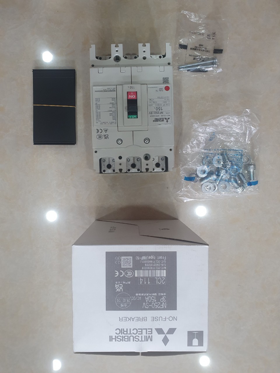 12 Tháng ( theo quy định của nhà SX )Aptomat khối (MCCB) Mitsubishi NF250-SV 3P 150A 36kA
