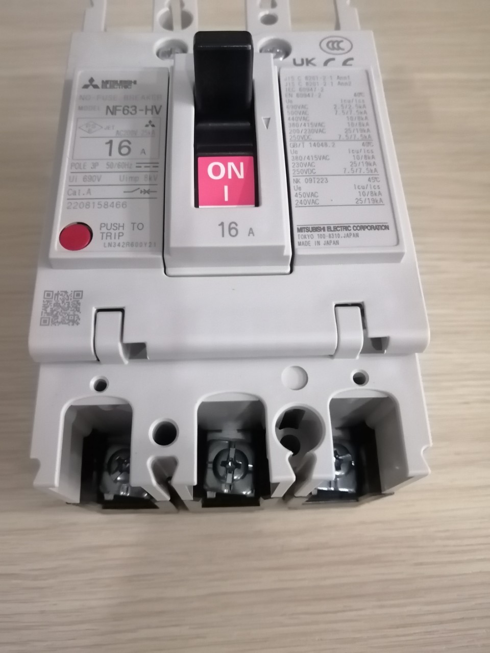 12 Tháng ( theo quy định của nhà SX )Aptomat khối (MCCB) Mitsubishi NF63-HV 3P 16A 10kA