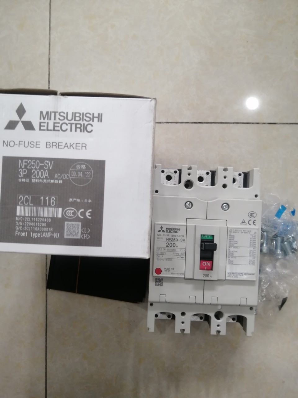12 Tháng ( theo quy định của nhà SX )Aptomat khối (MCCB) Mitsubishi NF250-SV 3P 200A 36kA