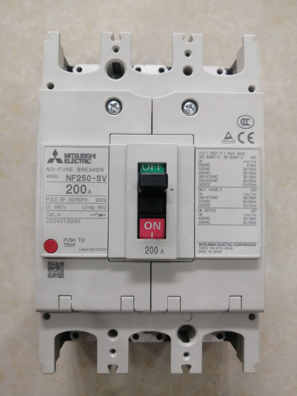 12 ThángAptomat khối (MCCB) Mitsubishi NF250-SV 3P 200A 36kA