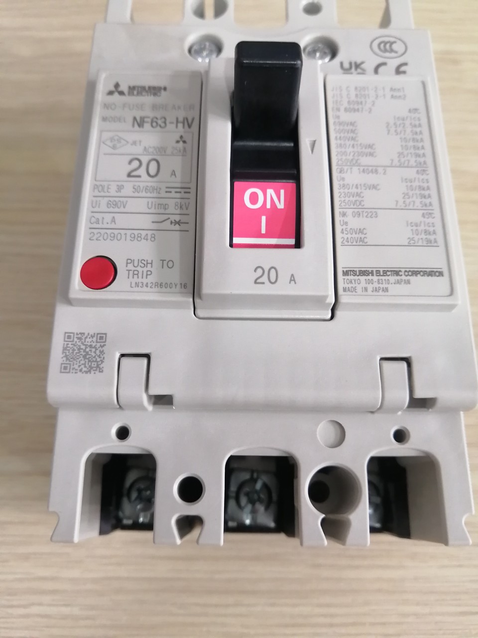 12 Tháng ( theo quy định của nhà SX )Aptomat khối (MCCB) Mitsubishi NF63-HV 3P 20A 10kA