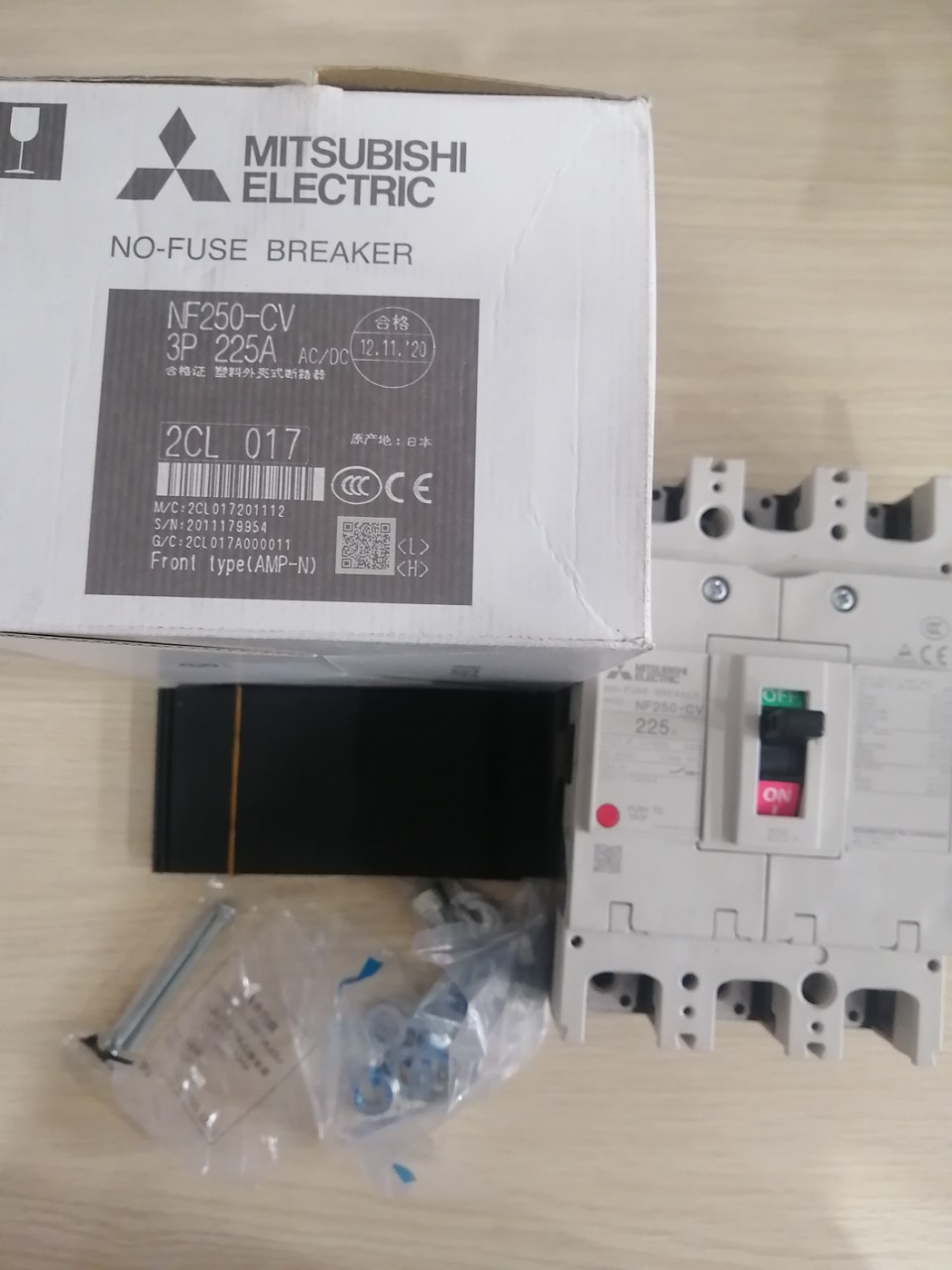 12 Tháng ( theo quy định của nhà SX )Aptomat khối (MCCB) Mitsubishi NF250-CV 3P 225A 25kA