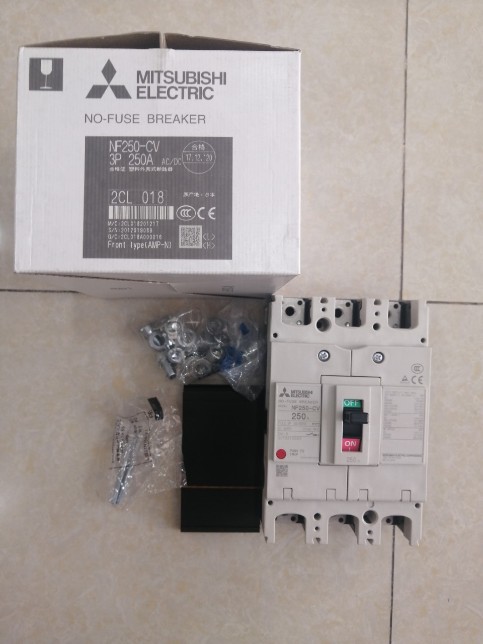12 Tháng ( theo quy định của nhà SX )MCCB MITSUBISHI NF250-CV 3P 250A 25kA