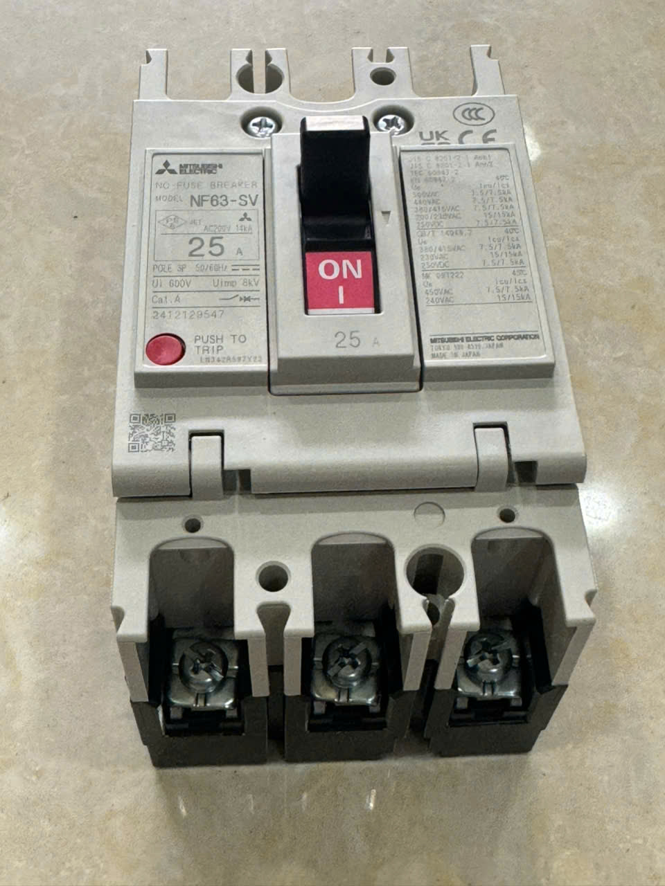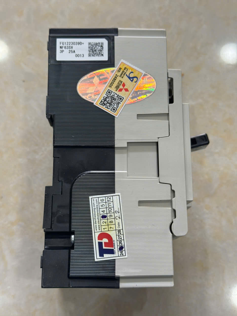 12 Tháng ( theo quy định của nhà SX )Aptomat khối (MCCB) Mitsubishi NF63-SV 3P 25A 7.5kA