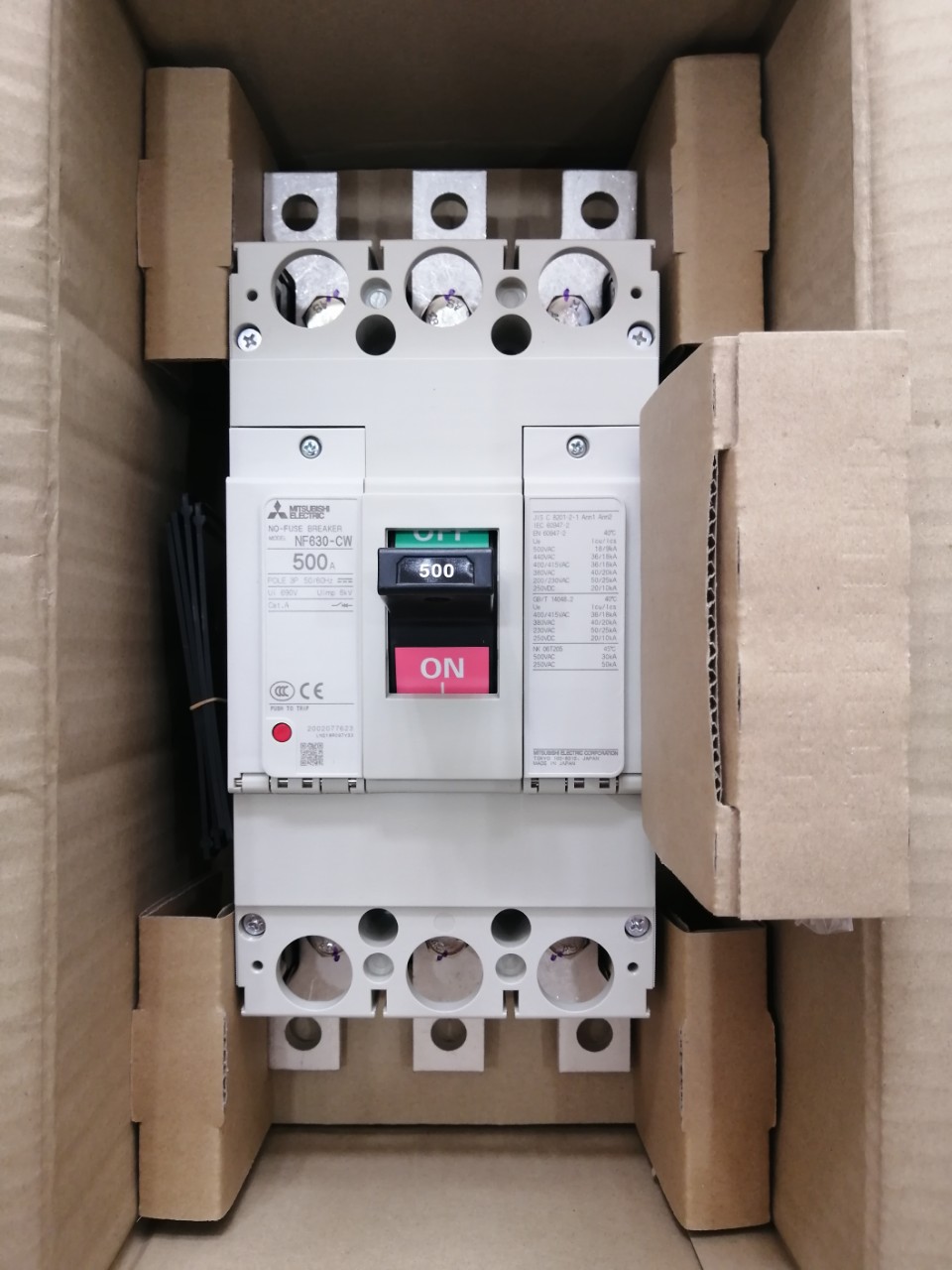 12 Tháng ( theo quy định của nhà SX )Aptomat khối (MCCB) Mitsubishi NF630-CW 3P 500A 36kA