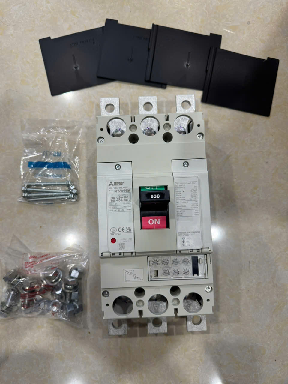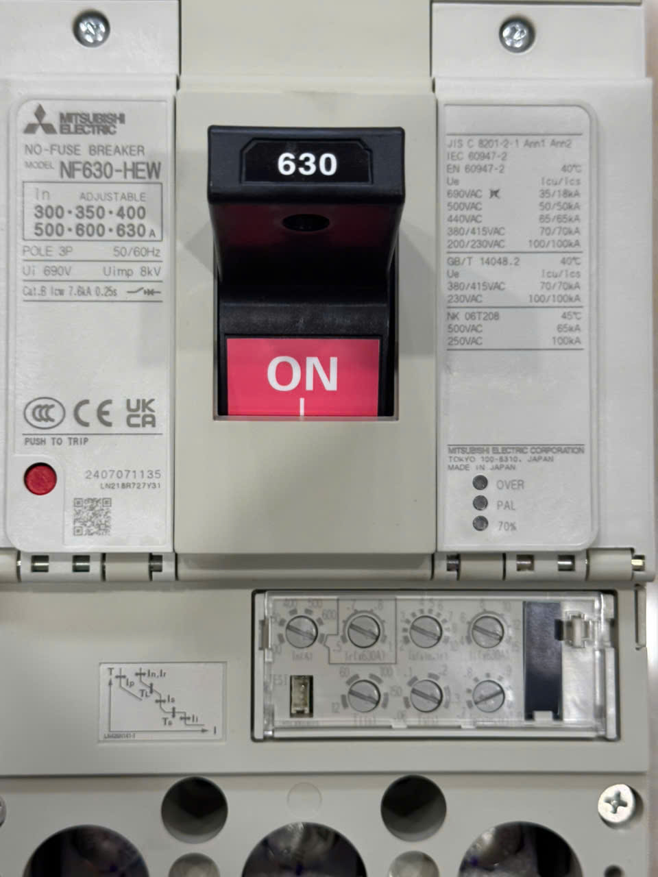 12 Tháng ( theo quy định của nhà SX )Aptomat khối (MCCB) Mitsubishi NF630-HEW 3P 300-630A 70kA