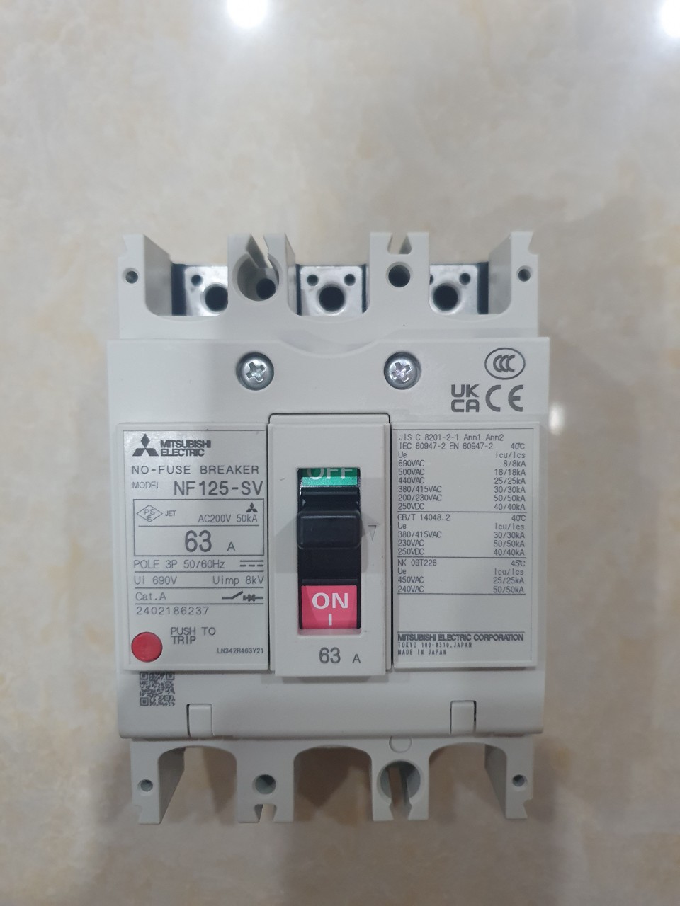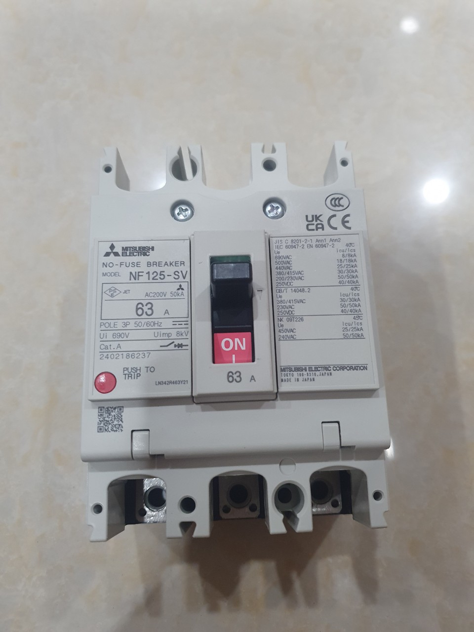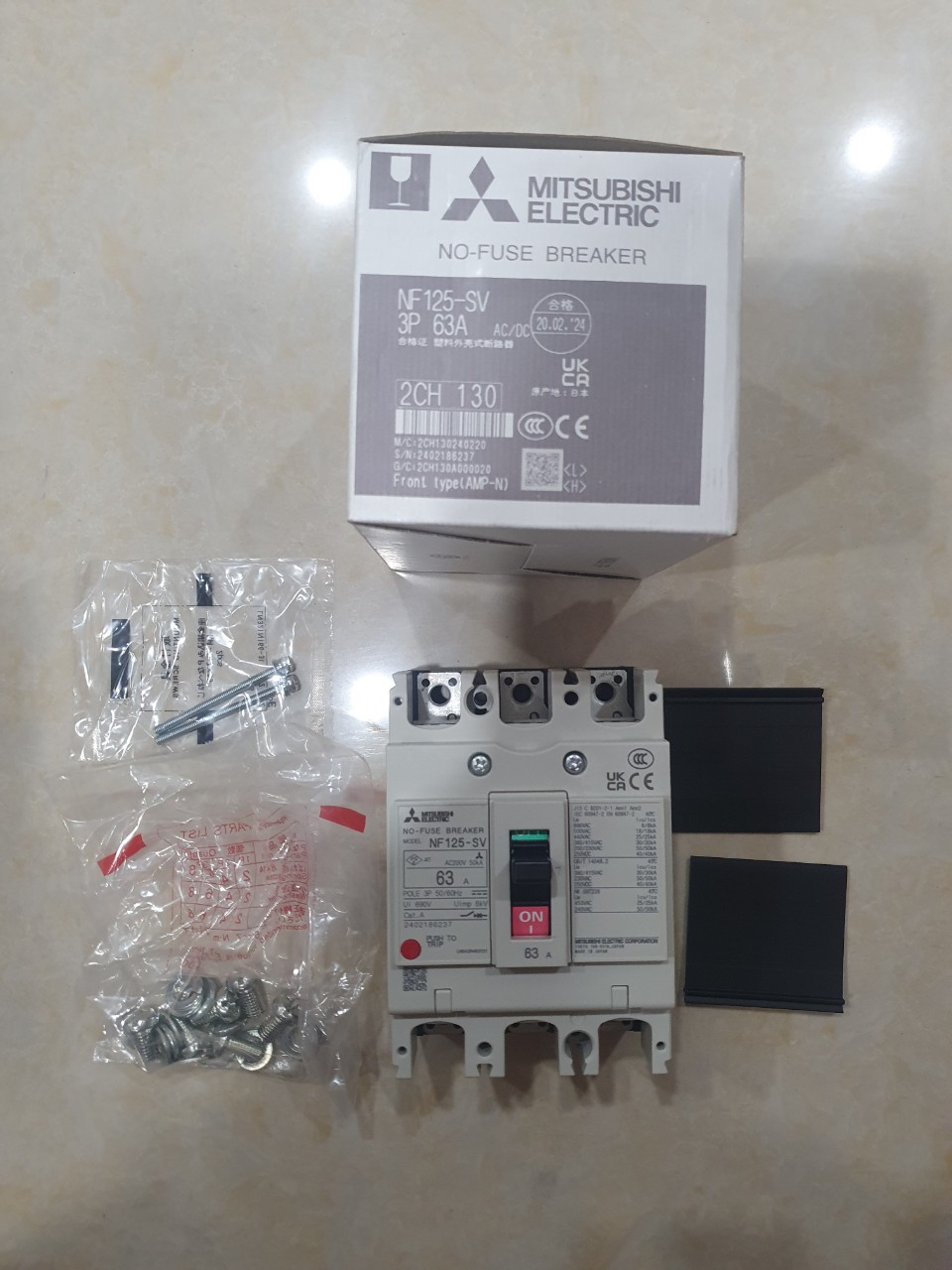 12 Tháng ( theo quy định của nhà SX )Aptomat khối (MCCB) Mitsubishi NF125-SV 3P 63A 30kA