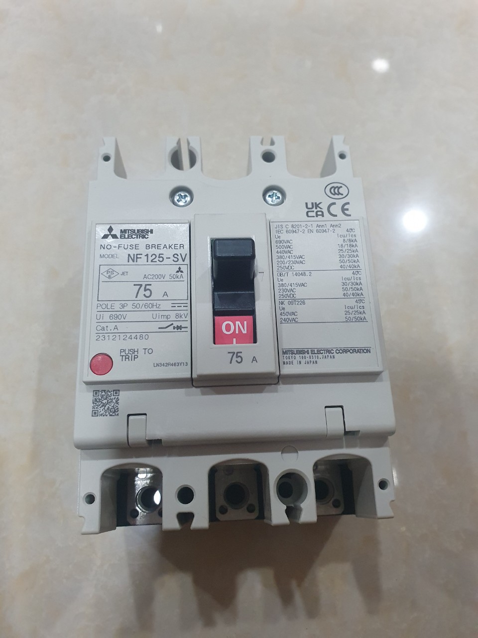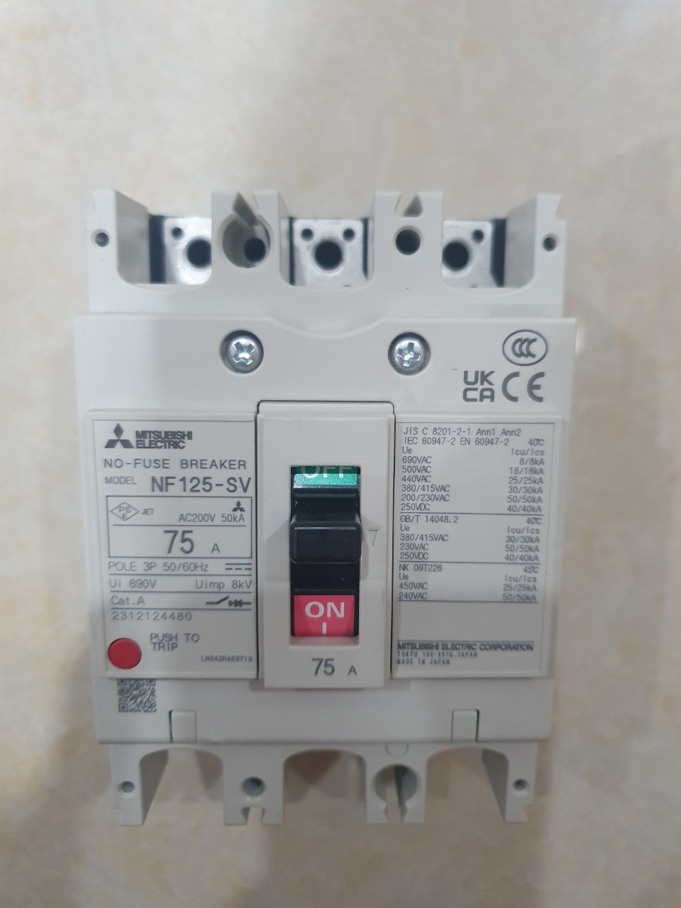 12 Tháng ( theo quy định của nhà SX )Aptomat khối (MCCB) Mitsubishi NF125-SV 3P 75A 30kA