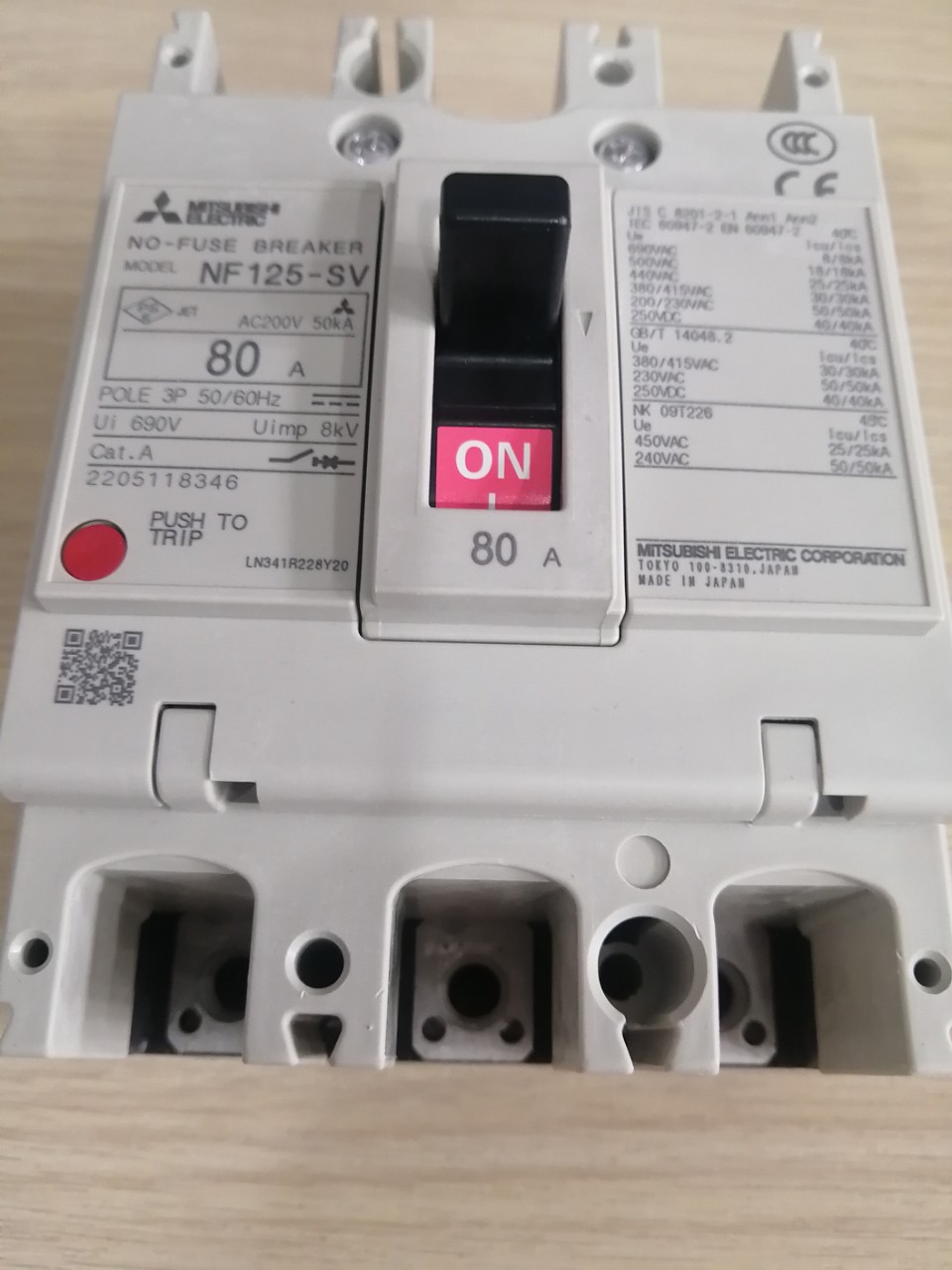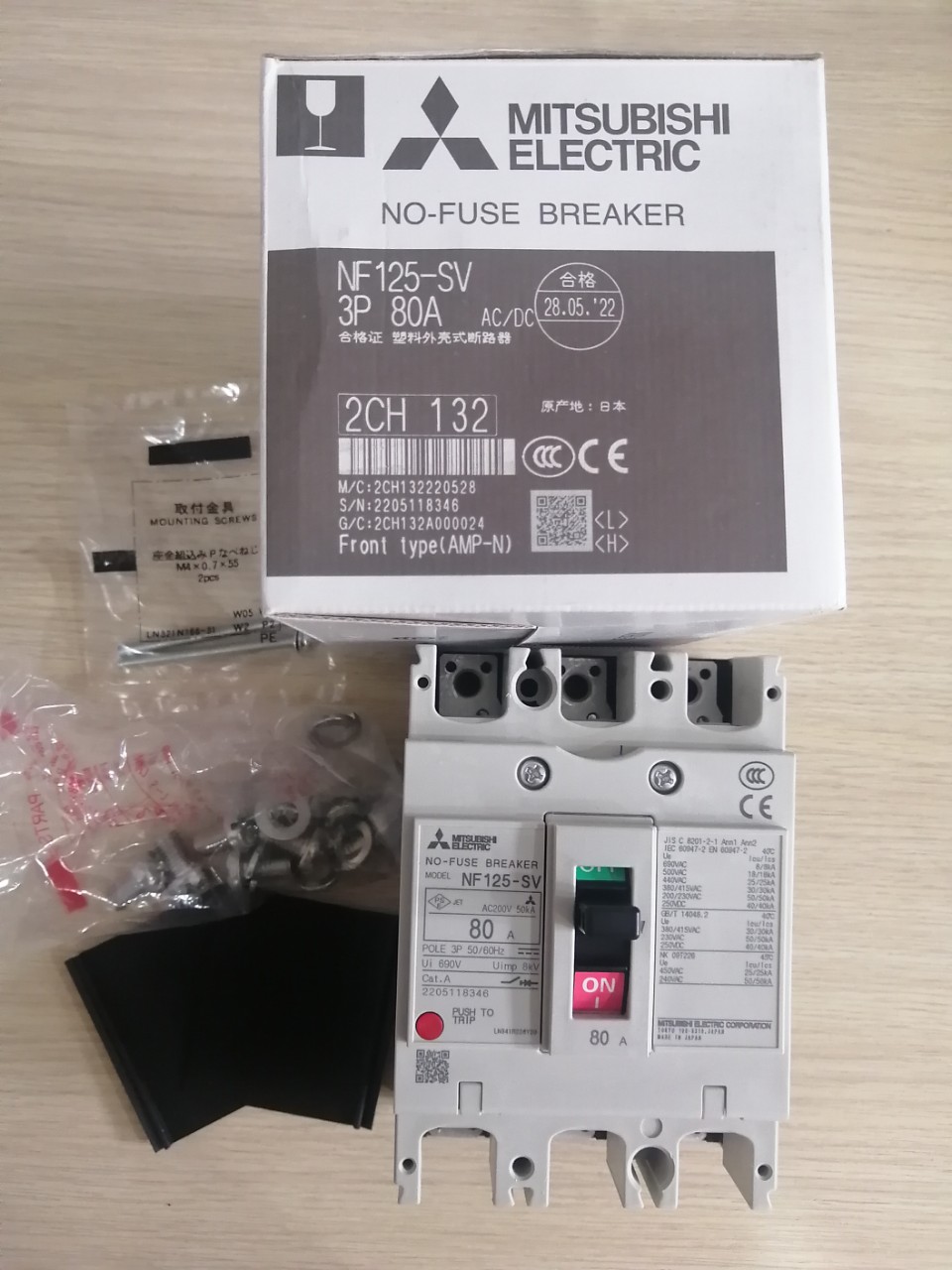 12 Tháng ( theo quy định của nhà SX )Aptomat khối (MCCB) Mitsubishi NF125-SV 3P 80A 30kA
