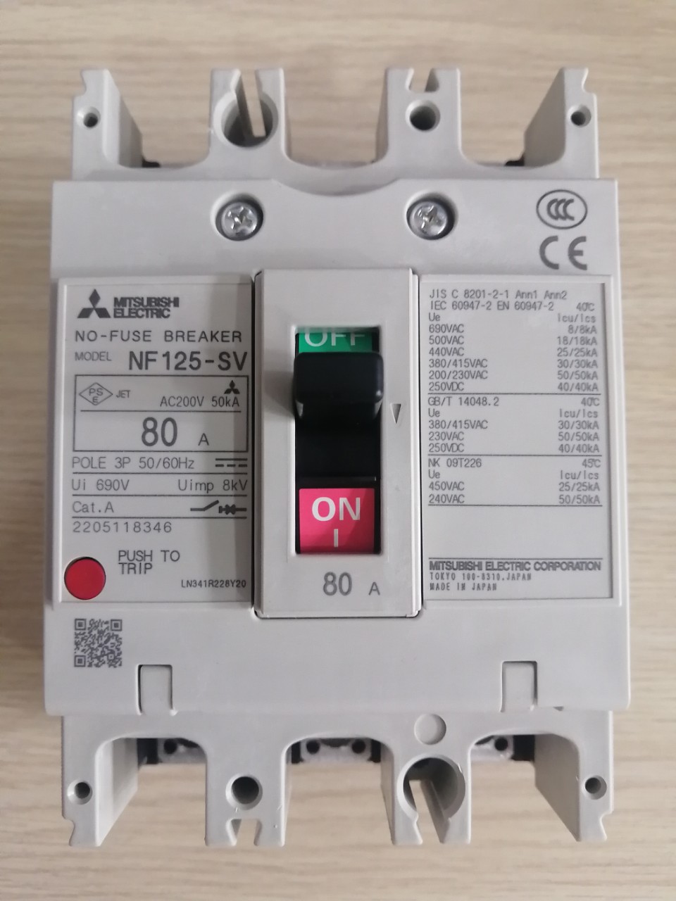 12 ThángAptomat khối (MCCB) Mitsubishi NF125-SV 3P 80A 30kA