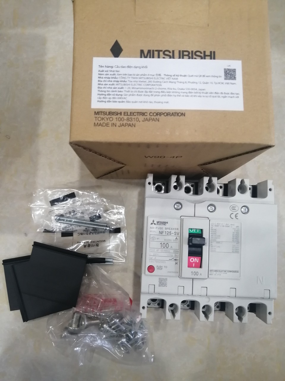 12 Tháng ( theo quy định của nhà SX )Aptomat khối (MCCB) Mitsubishi NF125-SV 4P 100A 30kA