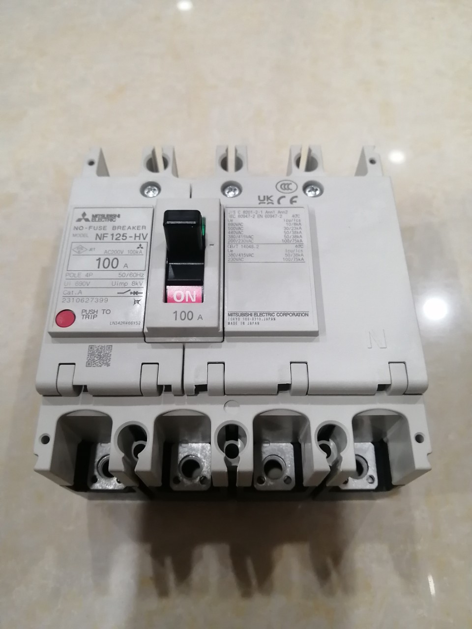 12 Tháng ( theo quy định của nhà SX )Aptomat khối (MCCB) Mitsubishi NF125-HV 4P 100A 50kA