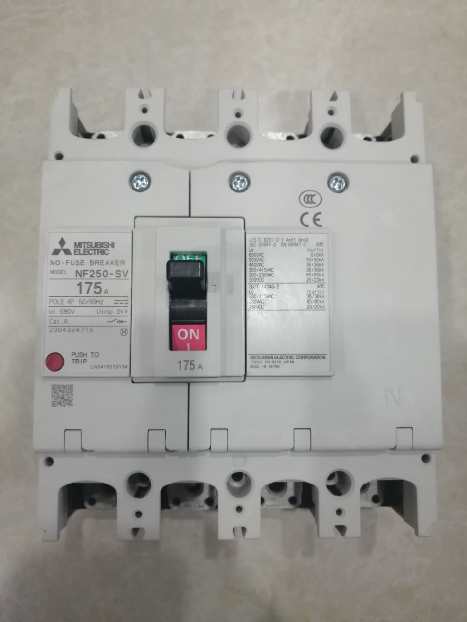 12 ThángAptomat khối (MCCB) Mitsubishi NF250-SV 4P 175A 36kA