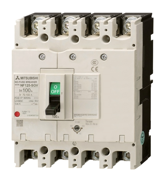 Các mẫu MCCB chỉnh dòng của Mitsubishi thường có ký hiệu "V" hoặc "W"ở cuối mã sản phẩm (ví dụ: NF125-SGV) và có thể điều chỉnh dòng định mức trong một dải nhất định (thường là 0.5 đến 1 lần dòng khung In, hoặc một dải cụ thể).