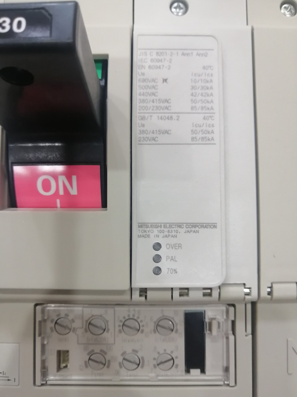 Các mẫu MCCB chỉnh dòng của Mitsubishi thường có ký hiệu "V" hoặc "W"ở cuối mã sản phẩm (ví dụ: NF125-SGV) và có thể điều chỉnh dòng định mức trong một dải nhất định (thường là 0.5 đến 1 lần dòng khung In, hoặc một dải cụ thể).