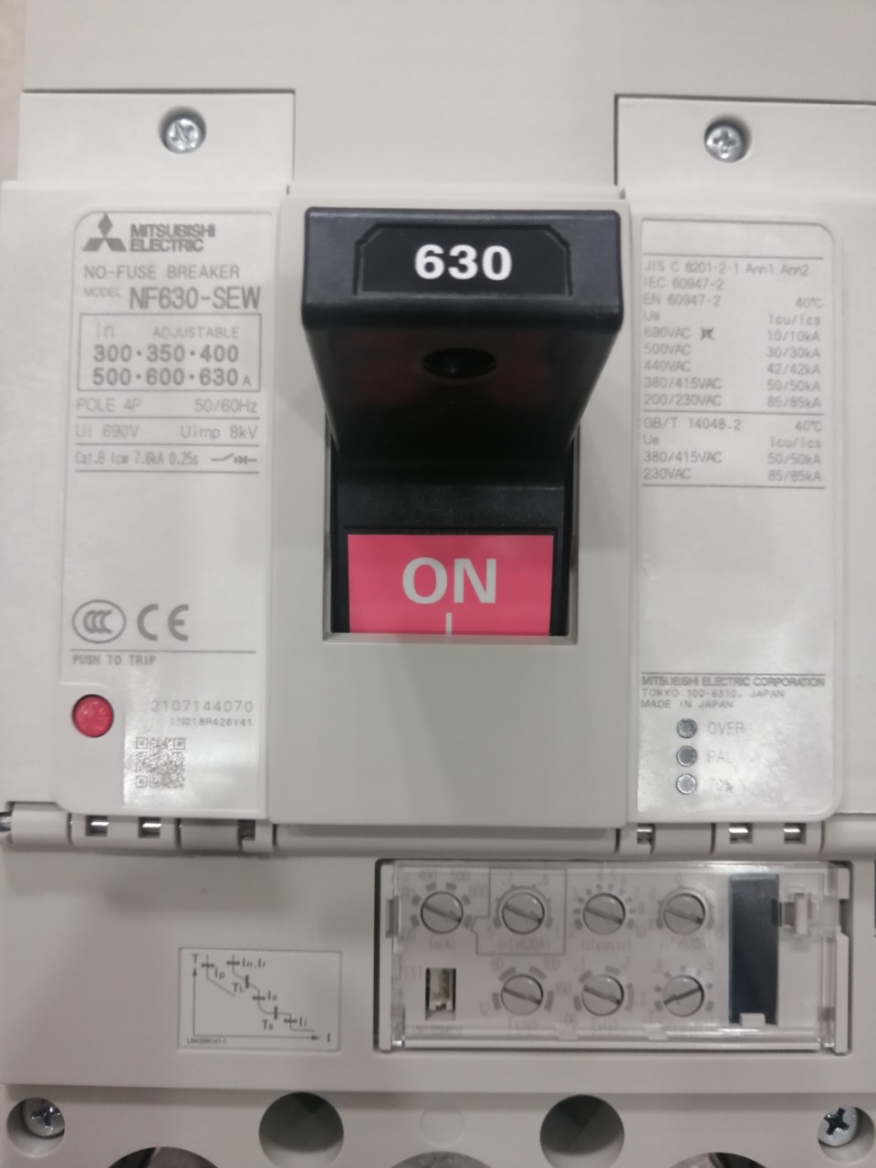 12 Tháng ( theo quy định của nhà SX )Aptomat khối (MCCB) Mitsubishi NF630-SEW 4P 300-630A 50kA